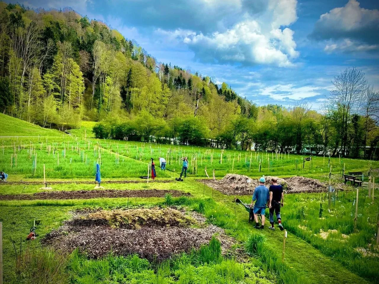 Das Projekt kann sowohl privaten Gärten als auch landwirtschaftlichen Betrieben Impulse geben. Es positioniert sich bewusst zwischen diesen Bereichen und versteht sich als verbindendes Modell. Mehrjährige Kulturen sind weder zwangsläufig kleinstrukturiert noch grundsätzlich der Mechanisierung entzogen. Der Waldgarten demonstriert in mittlerer Grössenordnung, was sich prinzipiell auch in grösseren Massstäben umsetzen lässt.