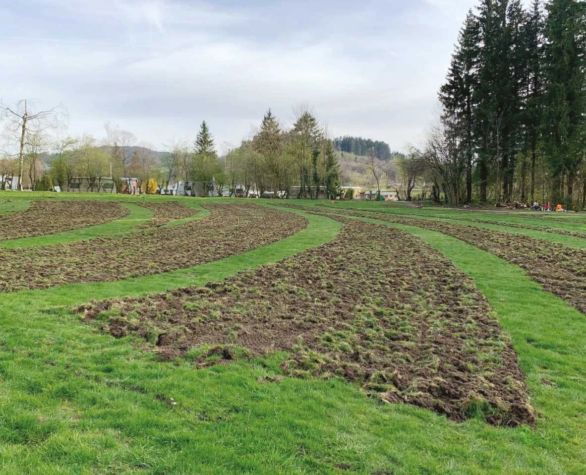 Durch die Lage neben dem Campingplatz ist die Anlage unmittelbar erlebbar. Bewohner und Gäste des Campingplatzes, Interessierte und Spaziergänger begegnen dem Waldgarten im Alltag.